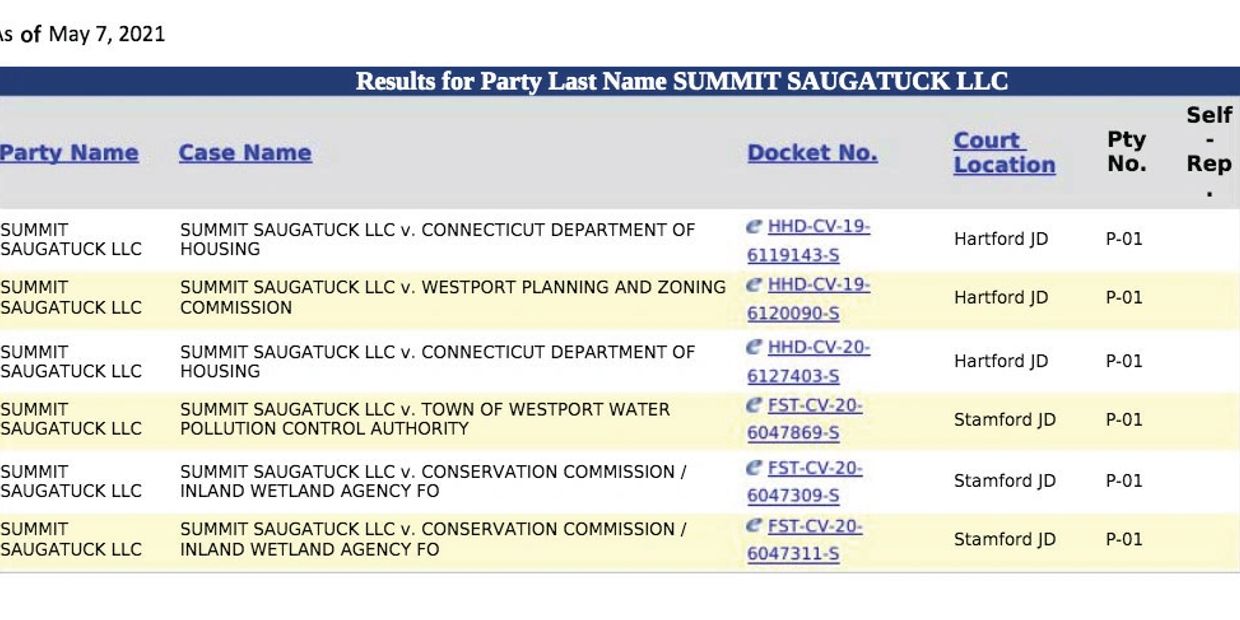 Look at this picture (Above) listing the current court cases that form the basis of the legal attacks that Summit Saugatuck LLC is waging against the Town of Westport.